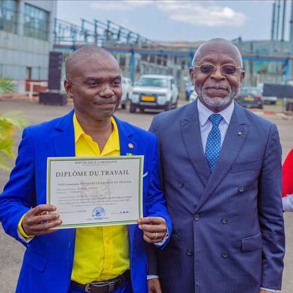 Le vendredi 3 Octobre 2025, Eramet Comilog a organisé une cérémonie doublement symbolique : la remise de 302 médailles du travail à ses collaborateurs et la célébration des 10 ans d’activité du Complexe Métallurgique de Moanda (CMM).