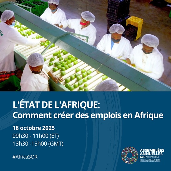 Cet événement, basé sur le rapport Africa’s Pulse d’octobre 2025, abordera les moyens de créer des emplois de qualité à grande échelle, en s’appuyant sur les secteurs porteurs et les leviers qui soutiennent la croissance économique et l’emploi, avec un accent particulier sur l’énergie.
